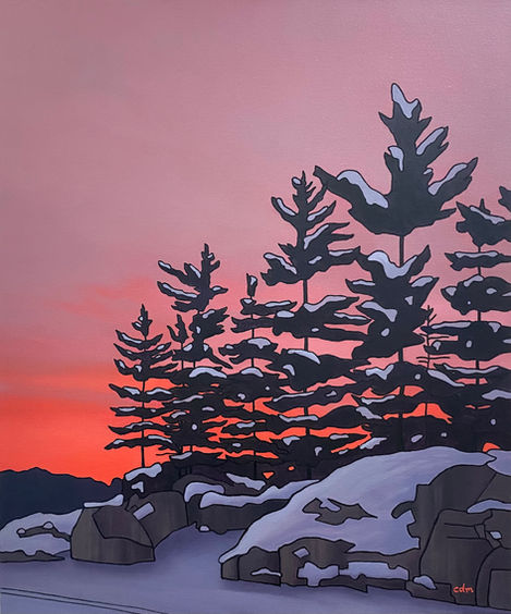 I try not to paint pictures or places so much as to paint a certain feeling. That "ahhhh" feeling that comes over you when you are completely moved by a beautiful sunset or an inspiring vista, or when in a quiet moment the largeness of the night sky really sinks in and overwhelms. Georgian Bay is my favourite place in the world, probably because it evokes that feeling in me over and over again. I hope you enjoy my original paintings, all are listed with dimensions and prices below.